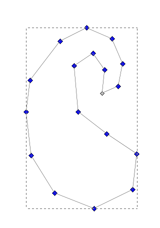 (Wow! I don't want to have to place all those little circles by hand!) Don't worry, we'll use a different method. Let's draw our teardrop first. Open a page in Inkscape and choose your Bezier tool. Using that tool, make a kind of teardrop shape, clicking with your mouse at least 10 or 12 times. That will give us nodes to use to manipulate our shape. Set the stroke black or gray, and the fill white.