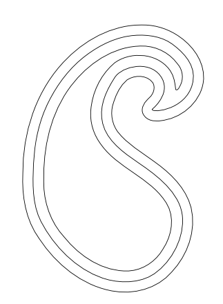Now, choose the original object and duplicate it again. This time use the Path > Inset menu item or <CTRL> + (. This one will shrink inside of the original so you will have three separate curves.
