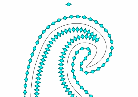 Tangential Offset - This setting has the effect of moving your objects sideways on your curve, which can be helpful if you see a corner where your objects seem to have a result you don't like. For example, my diamond might show up as on the left, but shifting it a bit would give the result on the right. Each pattern is different, so you would have to play with the settings to get what you want. If making the setting positive doesn't seem to work, try a negative setting.