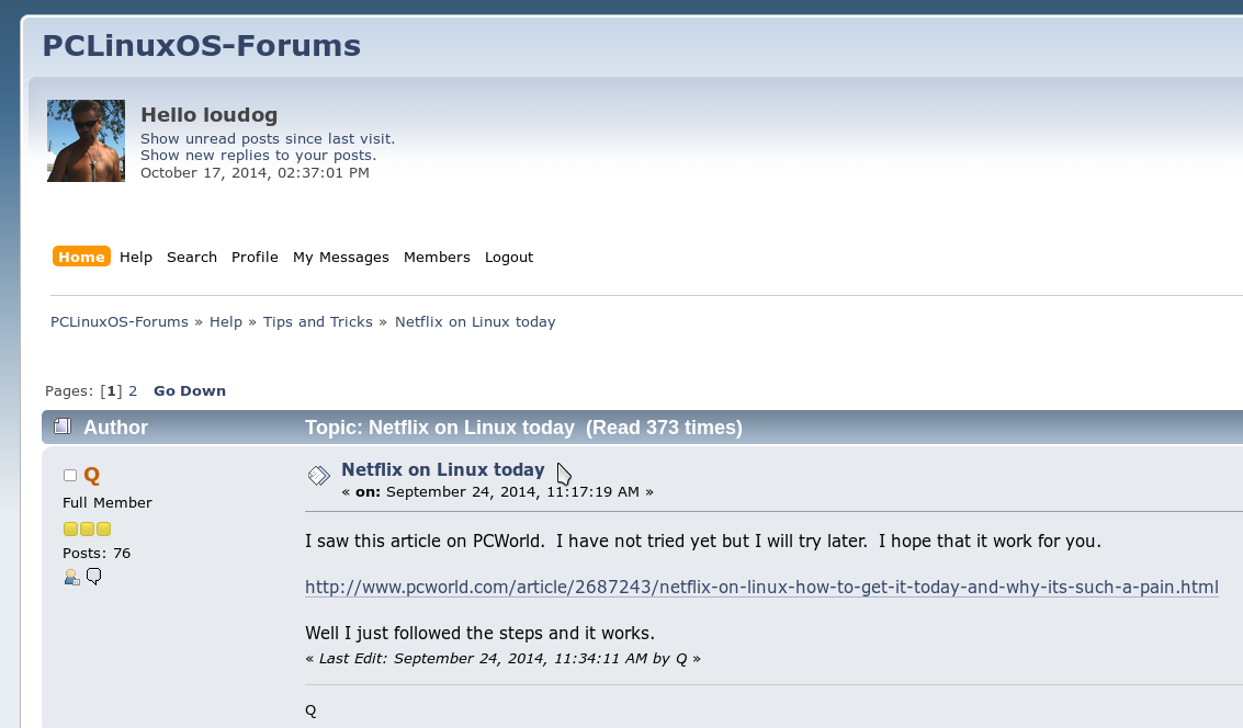 I am well aware of the early days when the frustration of trying to get Netflix to work on PCLinuxOS was not easy. Believe me. Actually, it was a real pain in the butt, to be honest. I personally just resorted to using my Android device or PS3, as I could never get it to work quite right on a consistent basis in Linux. It appears that those days may be over, with many reports of Netflix being used quite satisfactorily on PCLinuxOS recently in the forum. I will be using an example from the "Tips & Tricks" section on the forum for this writeup and all credit goes to our beloved (mostly anyway) forum members.
