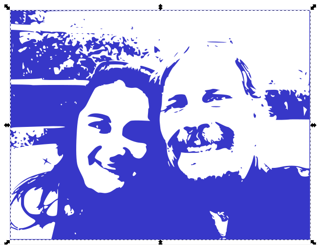 Now, choose Path > Trace Bitmap and you'll get a menu. Brightness cutoff 0.450 is default, so I left it there, then clicked OK. You might play with the settings if it's too dark or too light. I'm sure that it depends on the photo.