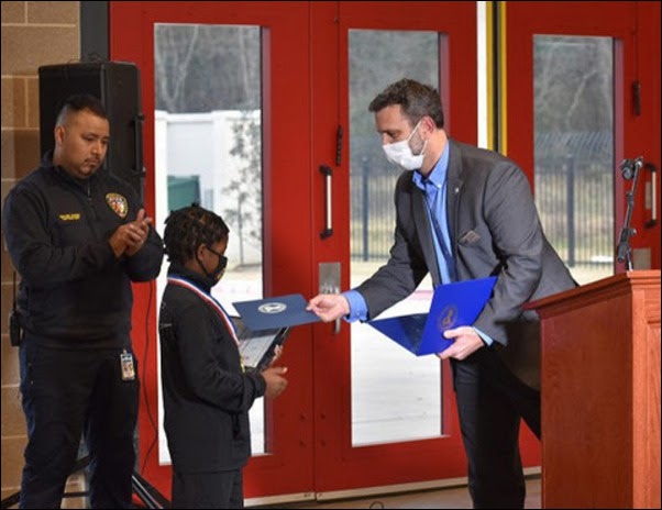The Spring, Texas Emergency Services groups had a ceremony to honor the eight year-old for his quick thinking. According to a local news outlet, Justin received a 911 Kid Hero Award, a Bravery Award, a proclamation for an act of bravery worthy of recognition, and children's firefighter gear.